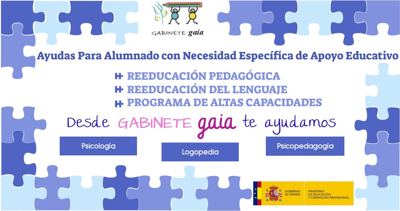 Además, trabajamos con alumnado perceptor de la Ayuda para Alumnado con Necesidad Específica de Apoyo Educativo para efectuar la reeducación pedagógica, la reeducación del lenguaje y el Programa Específico para Alumnado de Altas Capacidades.
